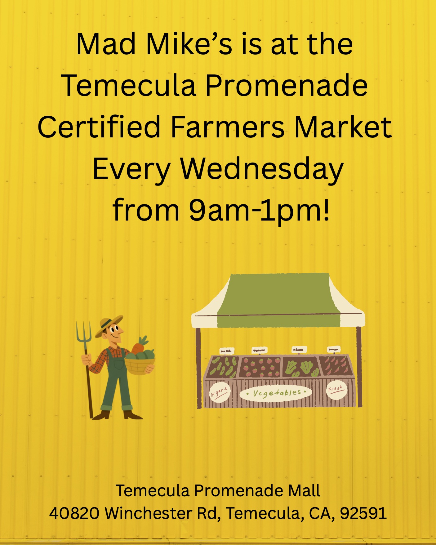 Temecula Mall Farmers Market Every Wednesday from 9:00-1:00 Come see our Pop-Up Store Visit Mike & Sherri at our New |