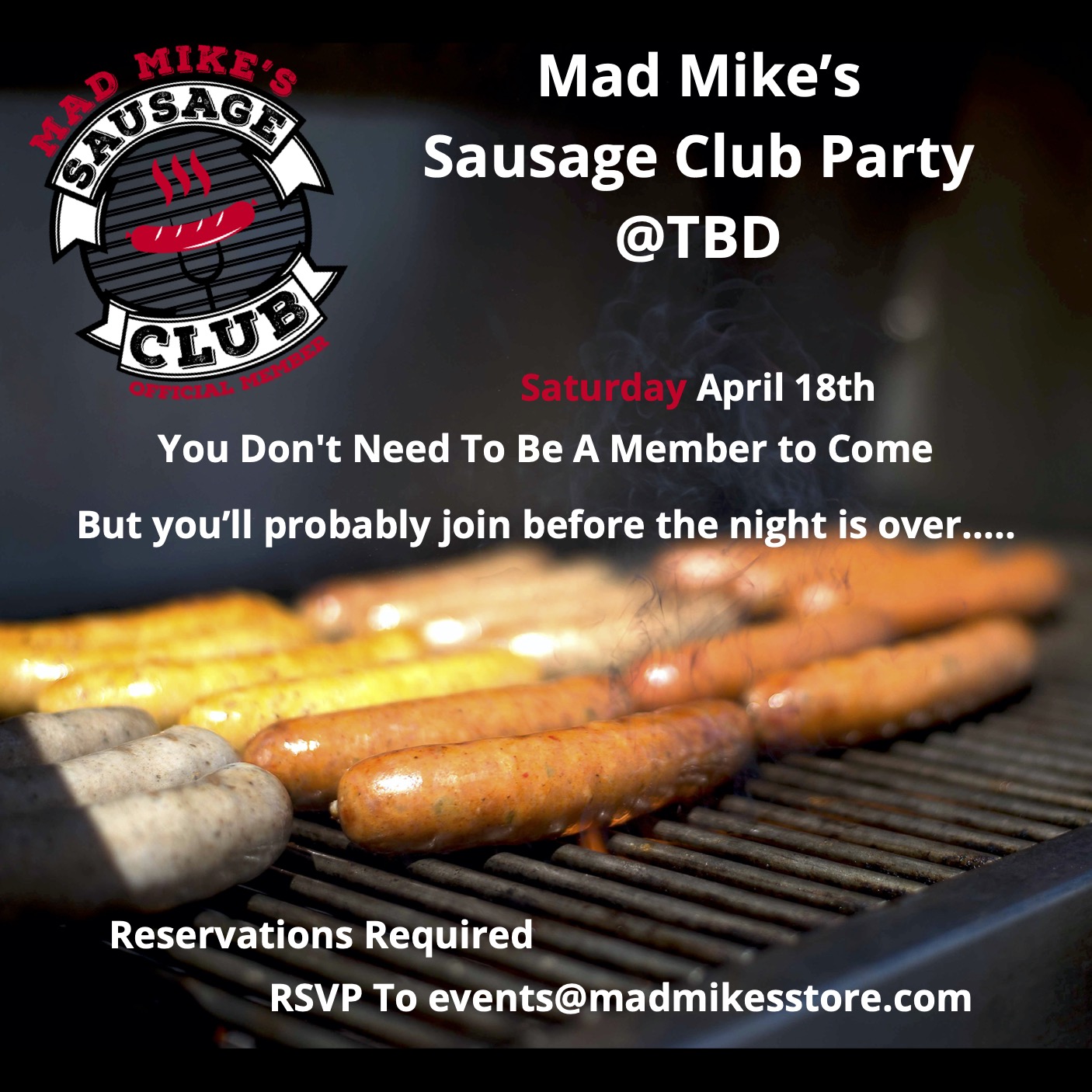 Join us for our next Sausage Club Pick Up Party/Dinner. Details will be announced soon. |